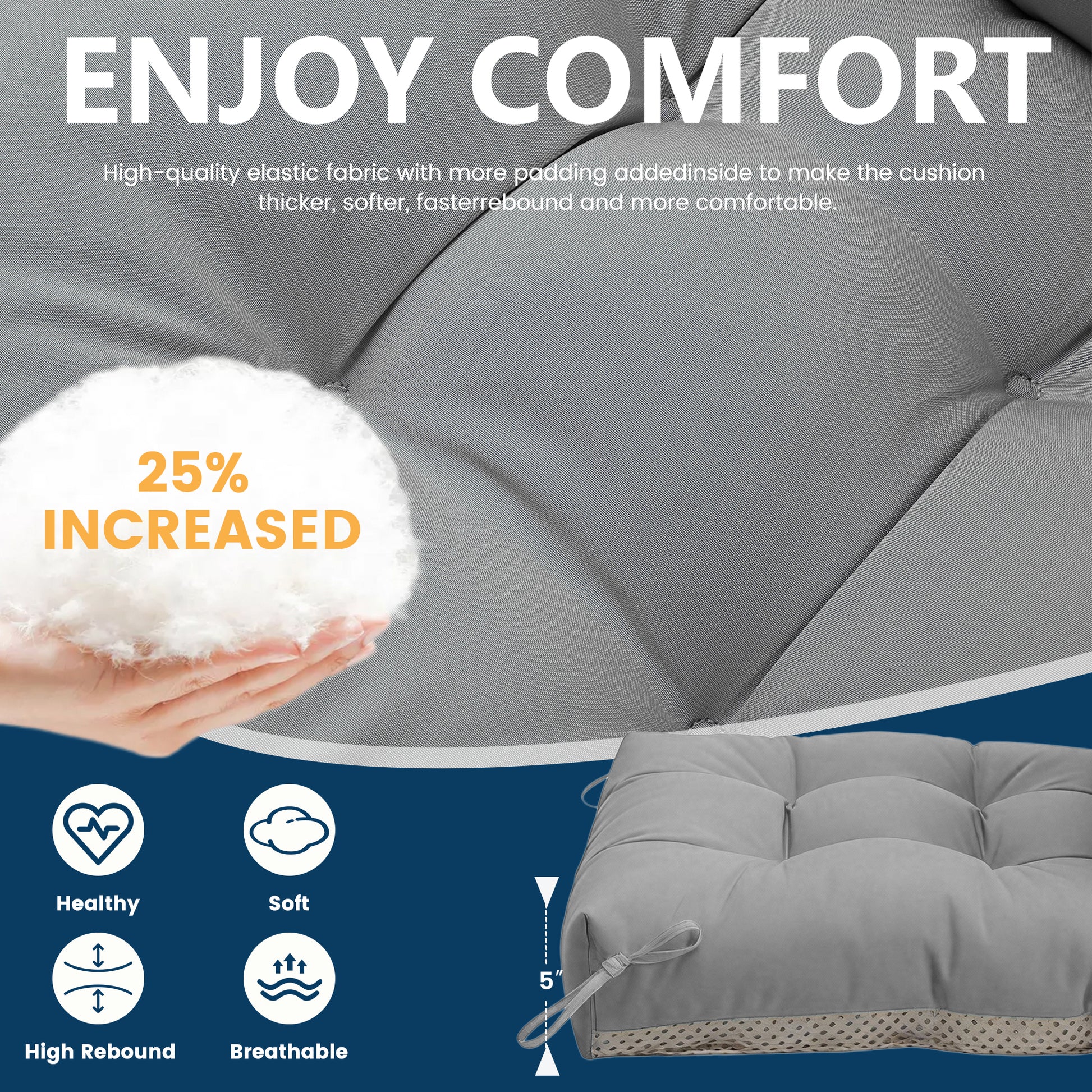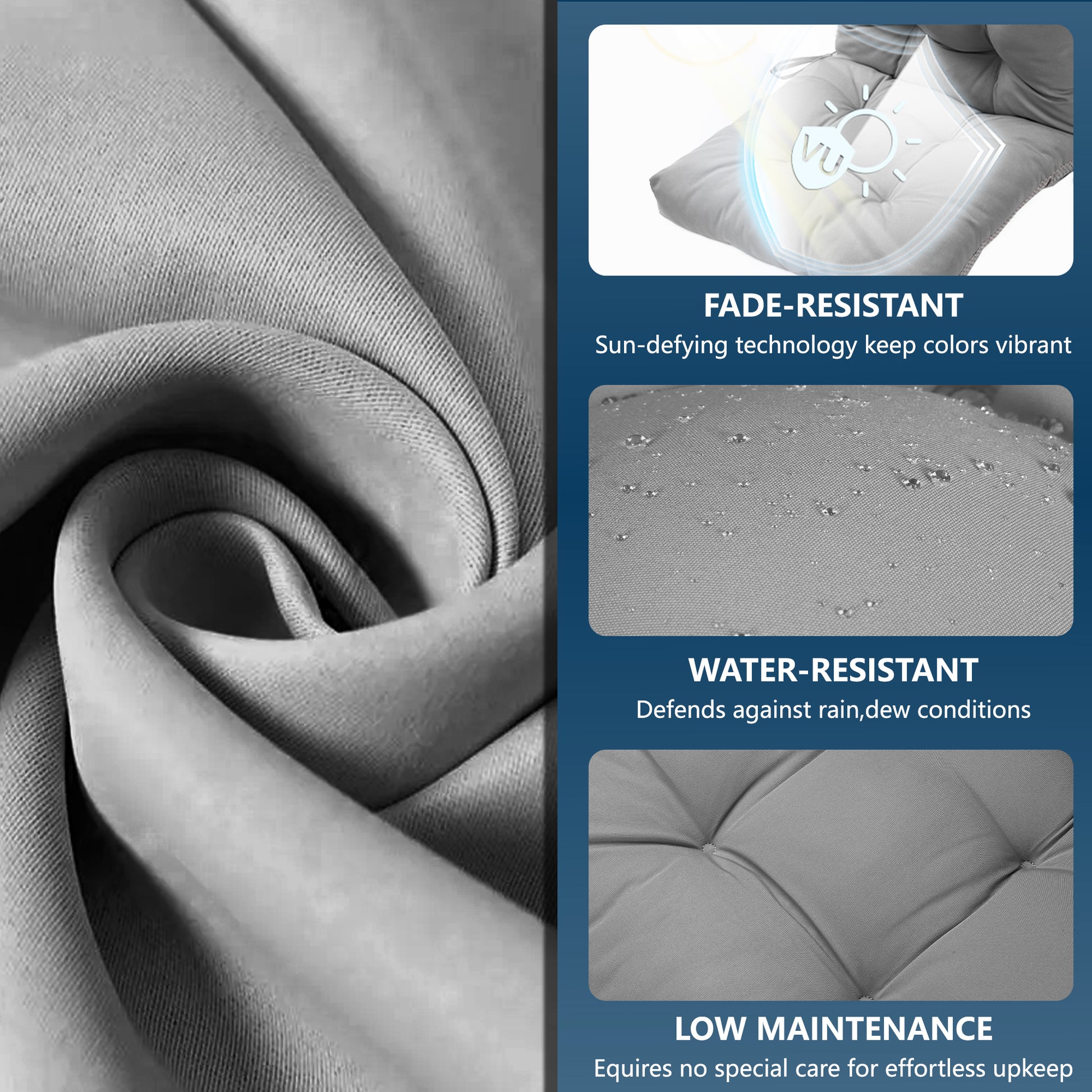 Experience a secure and comfortable sitting and lying experience with our Waterproof Adirondack Chair Cushion. The triple non-slip design, including spring and fabric straps and anti-slip points, ensures a stable fit on the chair. Made of premium waterproof polyester, it also offers easy cleaning and UV resistance for long-lasting use.